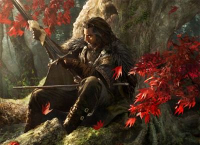 di oro e indossa il suo mantello nero.
